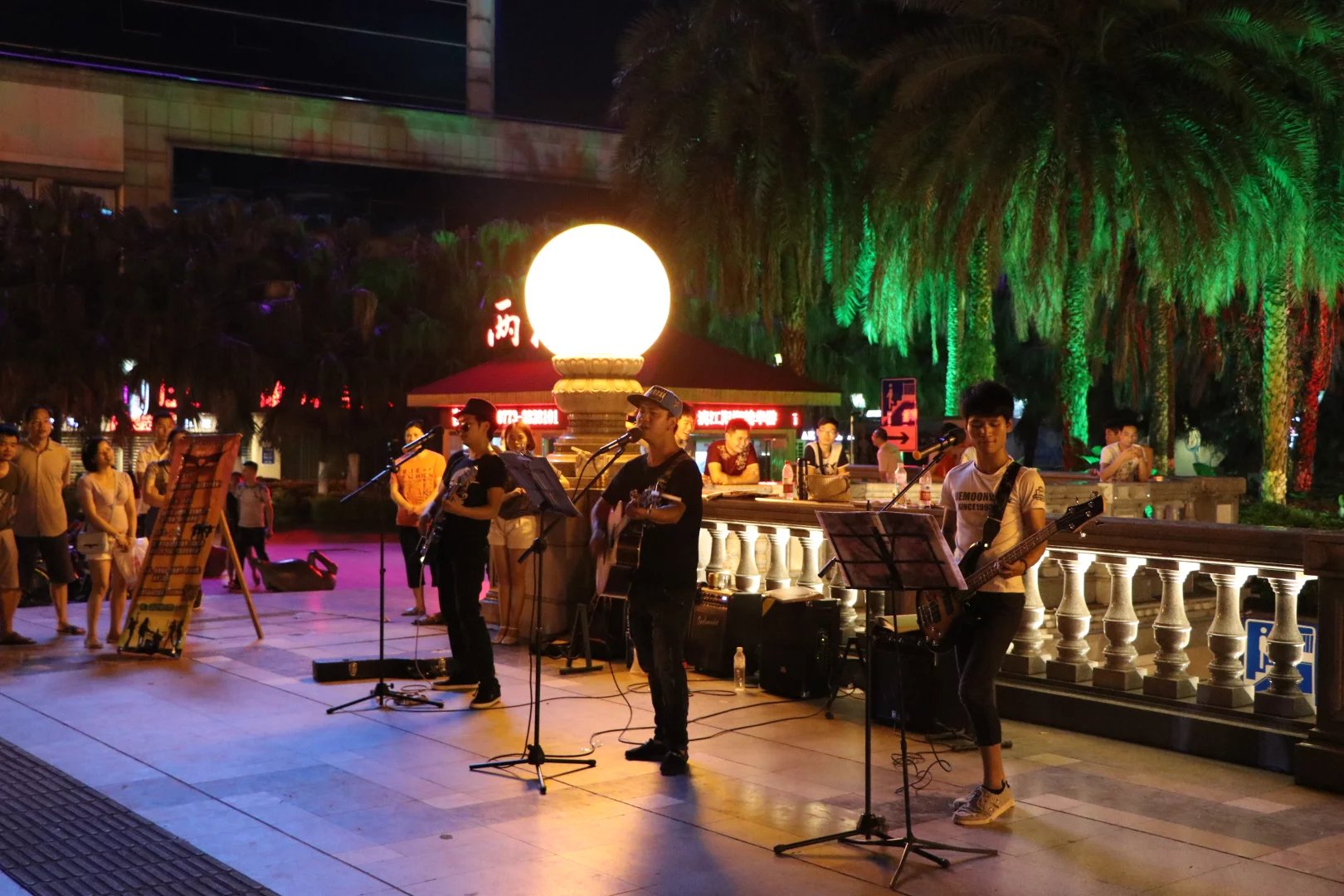 两江四湖的确适合晚上观赏,路边歌手沧桑的声音加上华丽灯光的映射,衬透出真个城市的繁华与喧闹。
