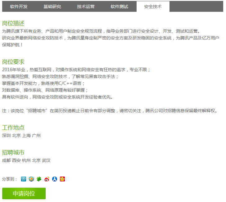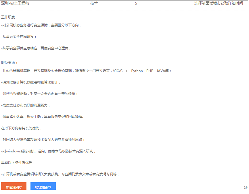 假如我真的被迫无法上研究生而去找工作呢(虽然早点工作是我一直以来都想干的)?以我现在所学的全部技能能谋得一份怎样的职业呢?从我自己的兴趣出发,找到了最适合我的职位:安全工程师。IT行业入职首选当然是BAT三巨头了,于是